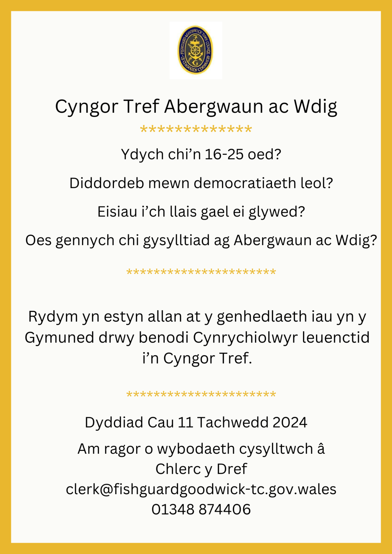 or: email secretary@visitfishguard.co.uk